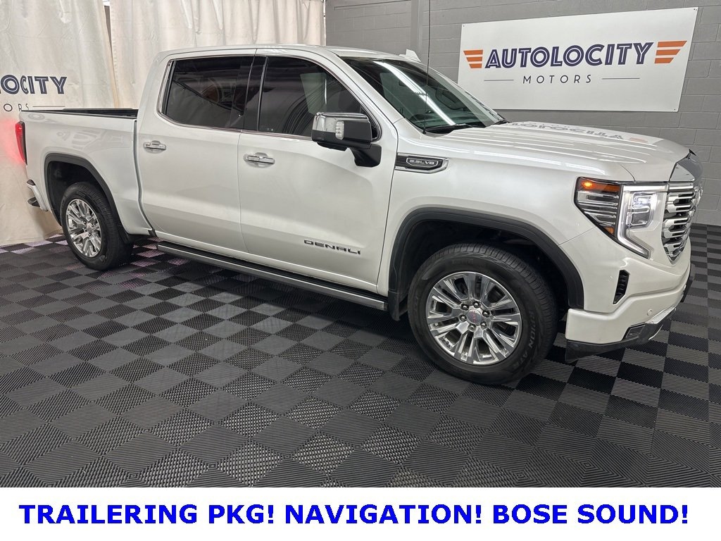 2022 GMC Sierra 1500 Denali with 39,974 miles! TRAILERING PKG, NAVIGATION, BACKUP CAMERA, HEATED AND COOLED FRONT LEATHER SEATS, HEATED REAR LEATHER SEATS, HEATED STEERING WHEEL, DUAL CLIMATE, REAR AIR, PARKING AID, BLINDSPOT MONITOR, LANE DEPARTURE/ASSIST, FORWARD COLLISION, REMOTE ENGINE START, REAR POWER SLIDING WINDOW, WIRELESS PHONE CHARGER, POWER RUNNING BOARDS, ALLOY WHEELS, WIFI, BOSE SOUND, BLUETOOTH, SIRIUS XM, APPLE CARPLAY, ANDROID AUTO, USB, USBC, TRUCK BED 62X68.