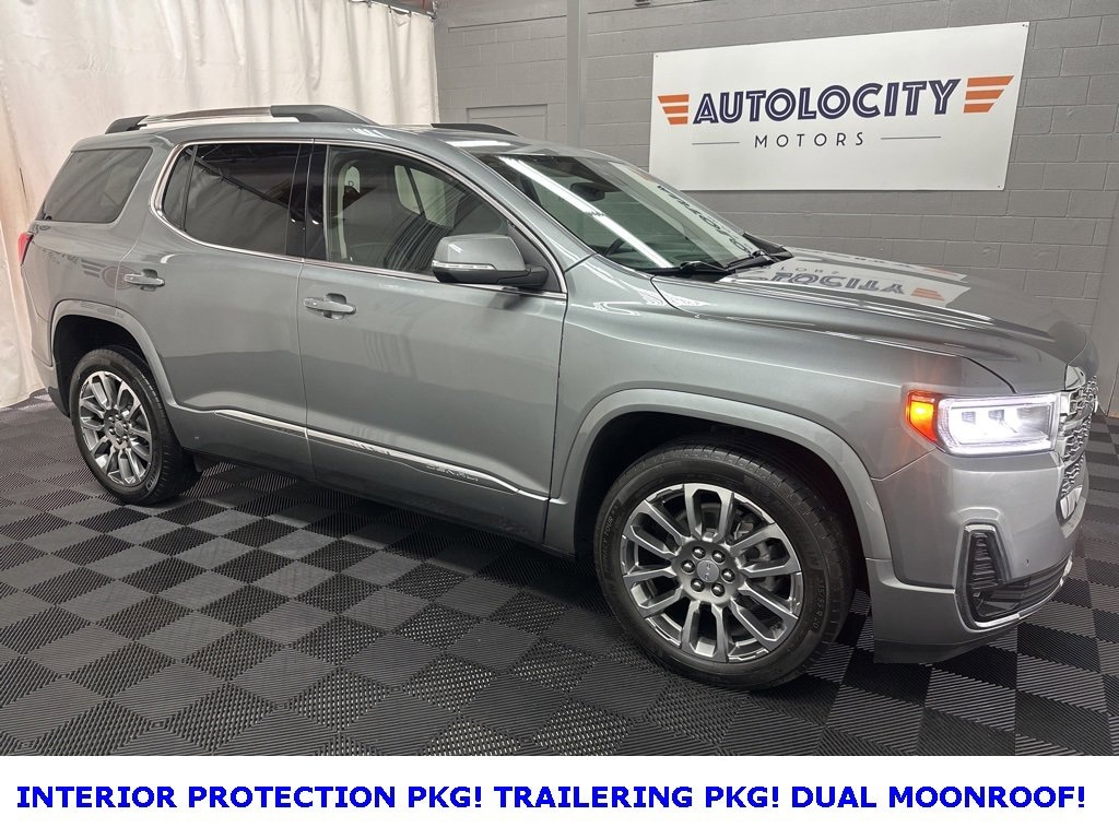 2023 GMC Acadia Denali with 44,079 miles! INTERIOR PROTECTION PKG, TRAILERING PKG, NAVIGATION, BACKUP CAMERA, HEATED AND COOLED FRONT LEATHER SEATS, HEATED REAR LEATHER SEATS, HEATED STEERING WHEEL, DUAL CLIMATE, REAR CLIMATE, DUAL MOONROOF, PARKING AID, BLINDSPOT MONITOR, LANE DEPARTURE/ASSIST, FORWARD COLLISION, HEADS UP DISPLAY, 3RD ROW 6 PASSENGER SEATING, REMOTE ENGINE START, POWER LIFTGATE, WIRELESS PHONE CHARGER, ALLOY WHEELS, WIFI, BOSE SOUND, BLUETOOTH, SIRIUS XM, APPLE CARPLAY, ANDROID AUTO, USB, USBC.