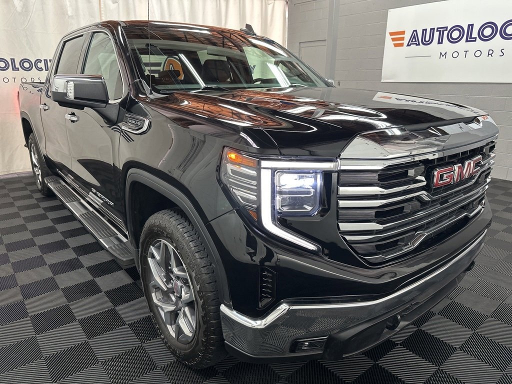 2023 GMC Sierra 1500 SLT with 12,751 miles! HIGH CAPACITY SUSPENSION PKG, SLT CONVENIENCE PKG, SLT PREMIUM PKG, STANDARD SUSPENSION PKG, TRAILERING PKG, X31 OFF-ROAD & PROTECTION PKG, NAVIGATION, BACKUP CAMERA, HEATED AND COOLED FRONT LEATHER SEATS, HEATED STEERING WHEEL, DUAL CLIMATE, REAR AIR, BLINDSPOT MONITOR, LANE DEPARTURE/ASSIST, FORWARD COLLISION, REMOTE ENGINE START, WIRELESS PHONE CHARGER, ALLOY WHEELS, WIFI, BOSE SOUND, BLUETOOTH, SIRIUS XM, APPLE CARPLAY, ANDROID AUTO, USB, USBC, TRUCK BED 62X68.