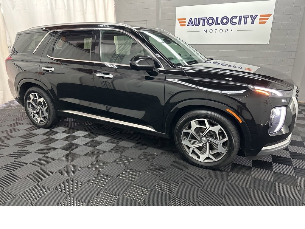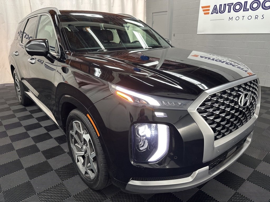 2021 Hyundai Palisade Calligraphy with 42,217 miles! CARGO PKG, NAVIGATION, BACKUP CAMERA, HEATED AND COOLED FRONT LEATHER SEATS, HEATED AND COOLED REAR LEATHER SEATS, HEATED STEERING WHEEL, DUAL CLIMATE, REAR CLIMATE, DUAL MOONROOF, 3RD ROW 7 PASSENGER SEATING, REMOTE ENGINE START, POWER LIFTGATE, WIRELESS PHONE CHARGER, ALLOY WHEELS, WIFI, HARMAN/KARDON SOUND, BLUETOOTH, SIRIUS XM, APPLE CARPLAY, ANDROID AUTO, USB.