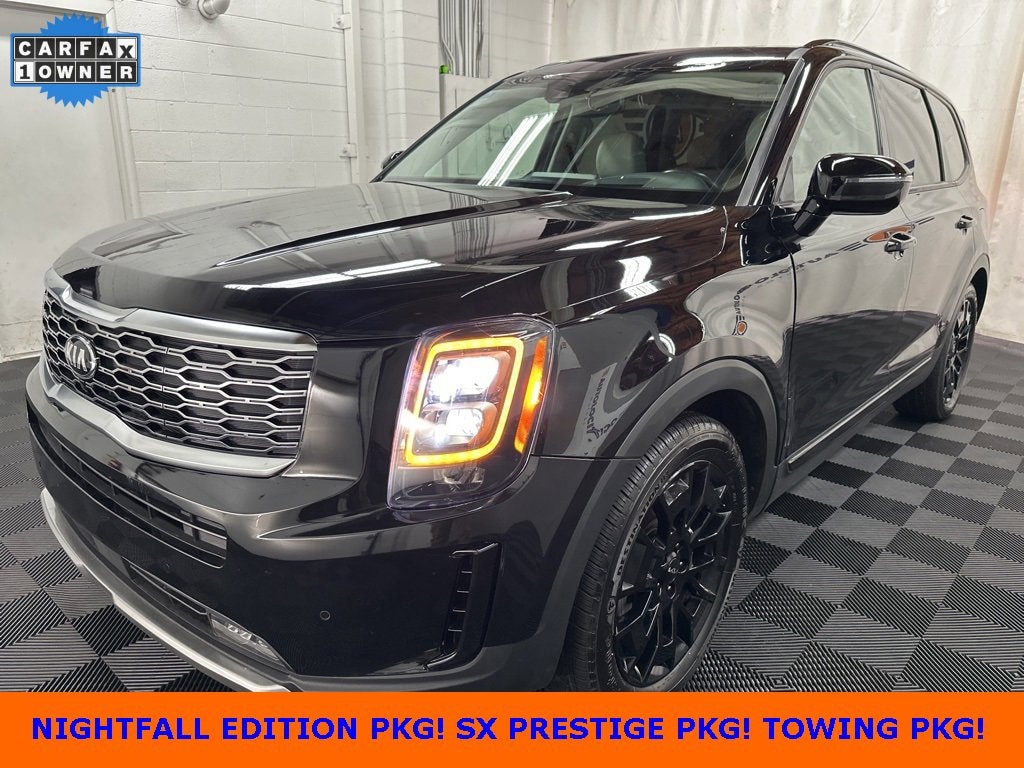 2022 Kia Telluride SX with 42,729 miles! NIGHTFALL EDITION PKG, SX PRESTIGE PKG, TOWING PKG, NAVIGATION, BACKUP CAMERA, HEATED AND COOLED FRONT LEATHER SEATS, HEATED AND COOLED REAR LEATHER SEATS, HEATED STEERING WHEEL, DUAL CLIMATE, REAR CLIMATE, DUAL MOONROOF, PARKING AID, BLINDSPOT MONITOR, LANE DEPARTURE/ASSIST, FORWARD COLLISION, 3RD ROW 7 PASSENGER SEATING, REMOTE ENGINE START, POWER LIFTGATE, WIRELESS PHONE CHARGER, ALLOY WHEELS, WIFI, HARMAN/KARDON SOUND, BLUETOOTH, SIRIUS XM, APPLE CARPLAY, ANDROID AUTO, USB.