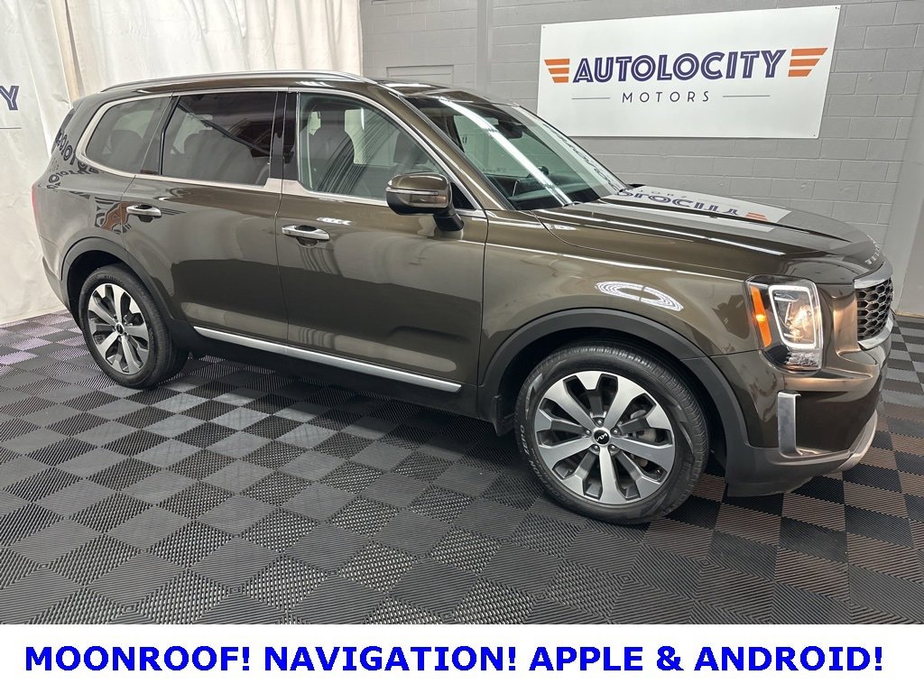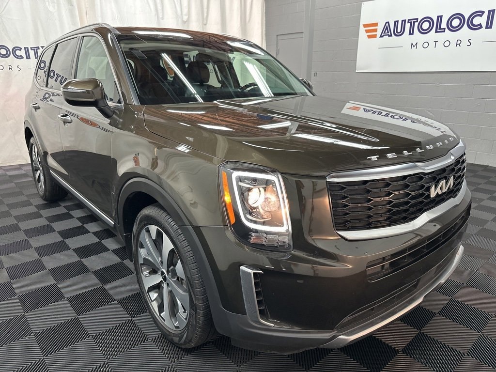 2022 Kia Telluride S with 48,734 miles! NAVIGATION, BACKUP CAMERA, HEATED FRONT LEATHER SEATS, DUAL CLIMATE, REAR CLIMATE, MOONROOF, PARKING AID, BLINDSPOT MONITOR, LANE DEPARTURE/ASSIST, FORWARD COLLISION, 3RD ROW 7 PASSENGER SEATING, REMOTE ENGINE START, WIRELESS PHONE CHARGER, ALLOY WHEELS, WIFI, HARMAN/KARDON SOUND, BLUETOOTH, SIRIUS XM, APPLE CARPLAY, ANDROID AUTO, USB.