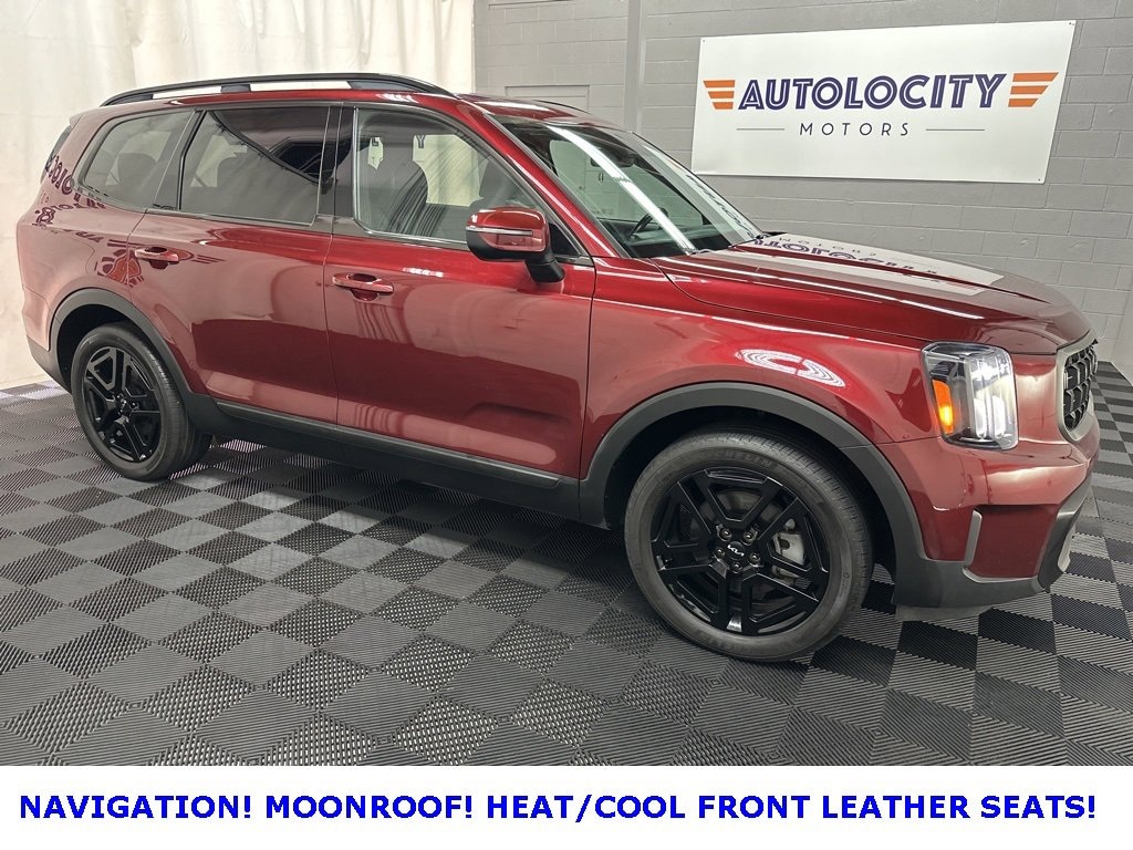 2023 Kia Telluride EX X-Line with 27,811 miles! NAVIGATION, BACKUP CAMERA, HEATED AND COOLED FRONT LEATHER SEATS, HEATED STEERING WHEEL, DUAL CLIMATE, REAR CLIMATE, MOONROOF, PARKING AID, BLINDSPOT MONITOR, LANE DEPARTURE/ASSIST, FORWARD COLLISION, 3RD ROW 8 PASSENGER SEATING, REMOTE ENGINE START, POWER LIFTGATE, WIRELESS PHONE CHARGER, ALLOY WHEELS, WIFI, HARMAN/KARDON SOUND, BLUETOOTH, SIRIUS XM, APPLE CARPLAY, ANDROID AUTO, USB, USBC.