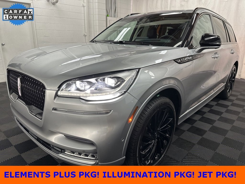 2023 Lincoln Aviator Reserve with 11,449 miles! ELEMENTS PKG PLUS, ILLUMINATION PKG, JET PKG, LINCOLN CO-PILOT 360 1.5 PLUS PKG, NAVIGATION, BACKUP CAMERA, HEATED AND COOLED FRONT LEATHER SEATS, HEATED AND COOLED REAR LEATHER SEATS, HEATED STEERING WHEEL, DUAL CLIMATE, REAR CLIMATE, MOONROOF, PARKING AID, BLINDSPOT MONITOR, LANE DEPARTURE/ASSIST, FORWARD COLLISION, HEADS UP DISPLAY, 3RD ROW 6 PASSENGER SEATING, REMOTE ENGINE START, POWER LIFTGATE, ALLOY WHEELS, WIFI, REVEL ULTIMA SOUND, BLUETOOTH, SIRIUS XM, APPLE CARPLAY, ANDROID AUTO, USB, USBC.