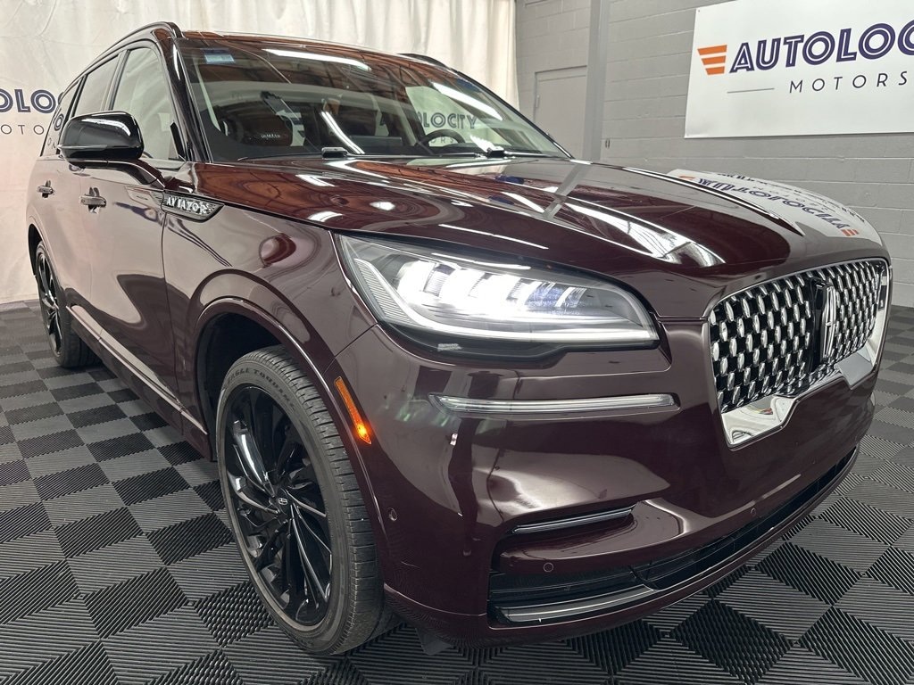 2023 Lincoln Aviator Reserve with 21,325 miles! ELEMENTS PKG PLUS, JET PKG, LINCOLN CO-PILOT360 1.5 PLUS PKG, NAVIGATION, BACKUP CAMERA, HEATED AND COOLED FRONT LEATHER SEATS, HEATED AND COOLED REAR LEATHER SEATS, HEATED STEERING WHEEL, DUAL CLIMATE, REAR CLIMATE, MOONROOF, PARKING AID, BLINDSPOT MONITOR, LANE DEPARTURE/ASSIST, FORWARD COLLISION, HEADS UP DISPLAY, 3RD ROW 6 PASSENGER SEATING, REMOTE ENGINE START, POWER LIFTGATE, WIRELESS PHONE CHARGER, ALLOY WHEELS, WIFI, REVEL ULTIMA SOUND, BLUETOOTH, SIRIUS XM, APPLE CARPLAY, ANDROID AUTO, USB, USBC.