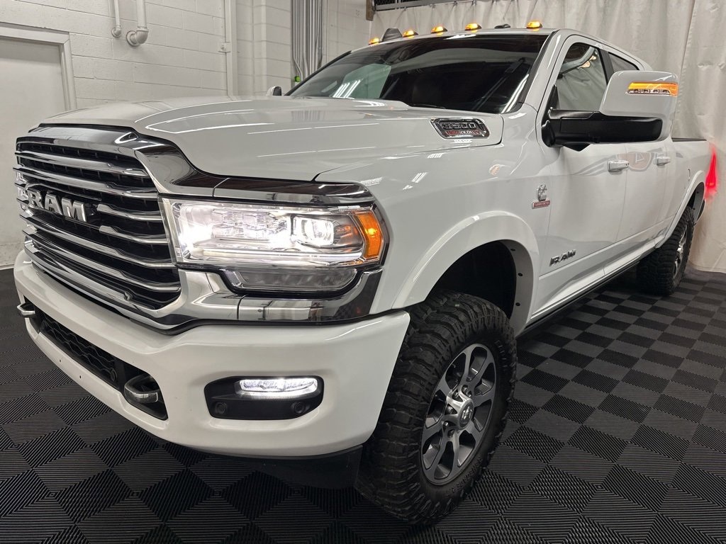 2023 Ram 3500 Laramie Longhorn with 46,400 miles! LONGHORN LEVEL 1 EQUIPMENT PKG, PROTECTION PKG, SAFETY PKG, TOW TECHNOLOGY PLUS PKG, NAVIGATION, BACKUP CAMERA, HEATED AND COOLED FRONT LEATHER SEATS, HEATED REAR LEATHER SEATS, HEATED STEERING WHEEL, DUAL CLIMATE, REAR AIR, MOONROOF, PARKING AID, BLINDSPOT MONITOR, LANE DEPARTURE/ASSIST, FORWARD COLLISION, REMOTE ENGINE START, REAR POWER SLIDING WINDOW, WIRELESS PHONE CHARGER, ALLOY WHEELS, WIFI, HARMAN/KARDON SOUND, BLUETOOTH, SIRIUS XM, APPLE CARPLAY, ANDROID AUTO, AUX, USB, USBC, TRUCK BED 62X74.