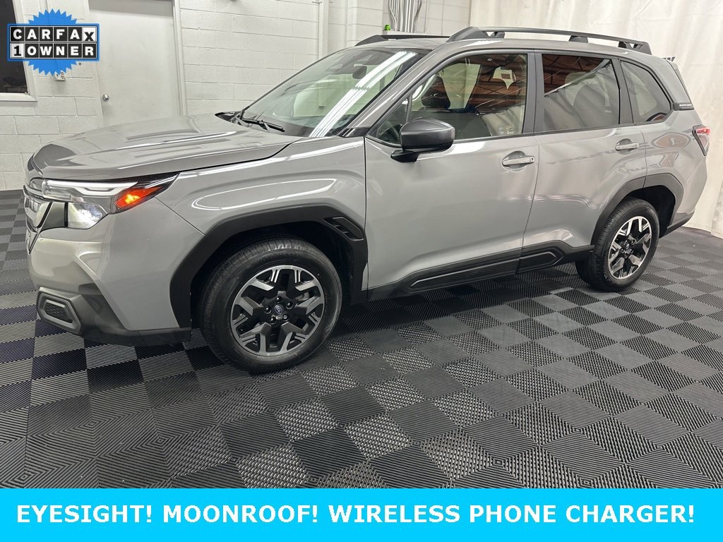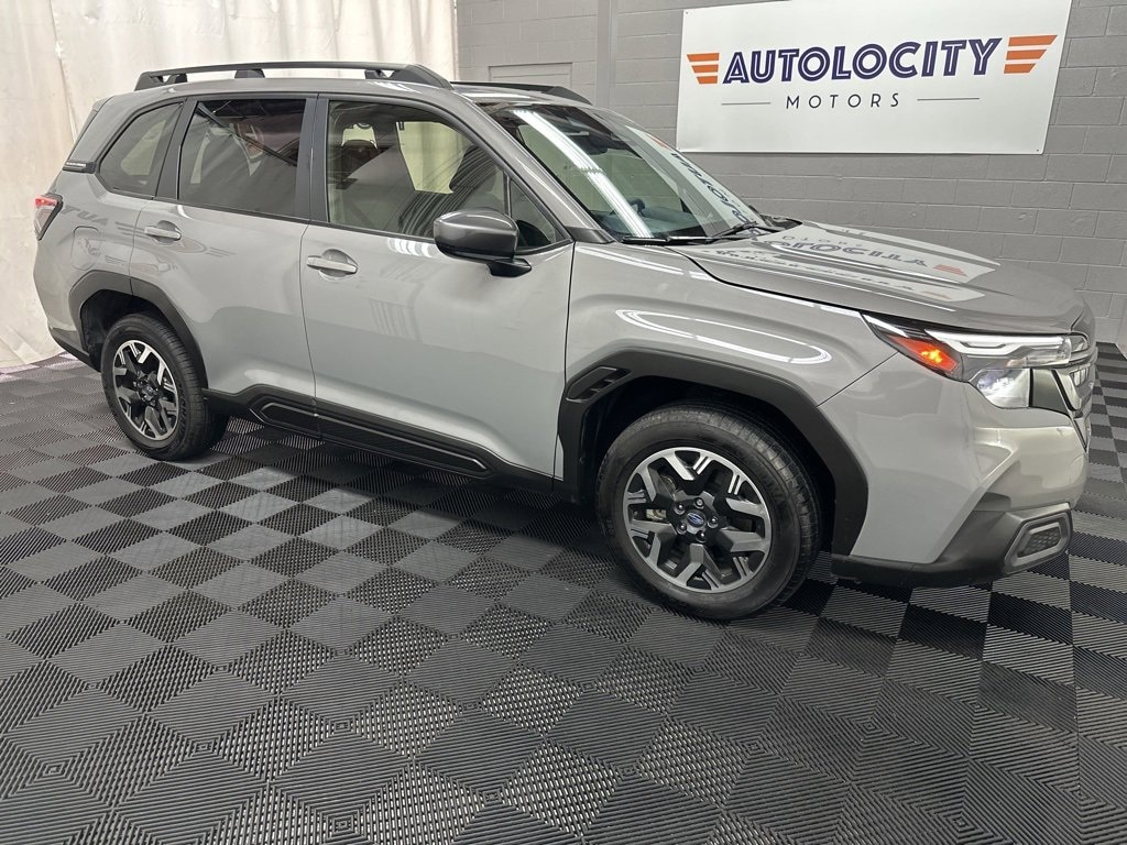 2025 Subaru Forester Premium with 3,670 miles! EYESIGHT, COMPASS, BACKUP CAMERA, HEATED FRONT CLOTH SEATS, DUAL CLIMATE, REAR AIR, MOONROOF, LANE DEPARTURE/ASSIST, FORWARD COLLISION, WIRELESS PHONE CHARGER, ALLOY WHEELS, WIFI, BLUETOOTH, SIRIUS XM, APPLE CARPLAY, ANDROID AUTO, AUX, USB, USBC.